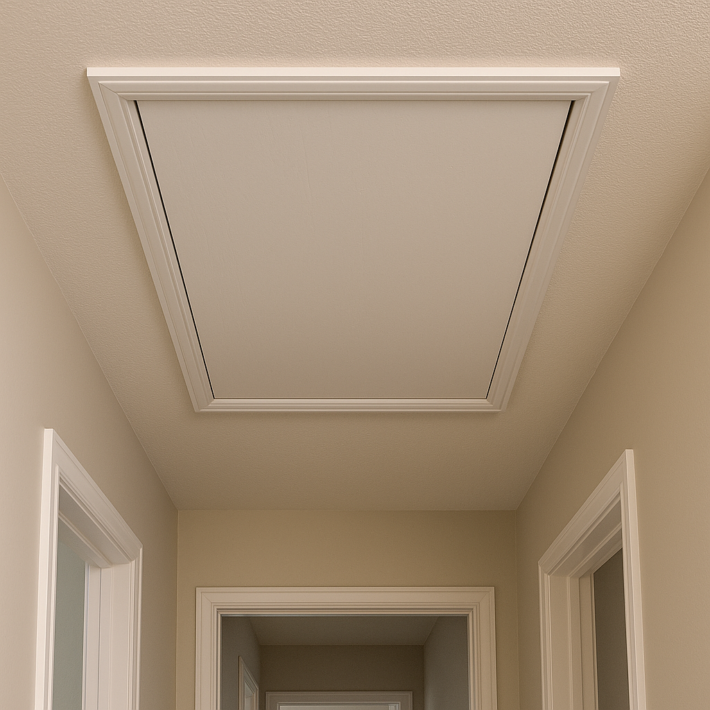An attic lift doesnât have to look industrial. Paint the underside white to match your ceiling and smooth any edges with trim molding. You can even add LED lighting around the opening for a modern finish.