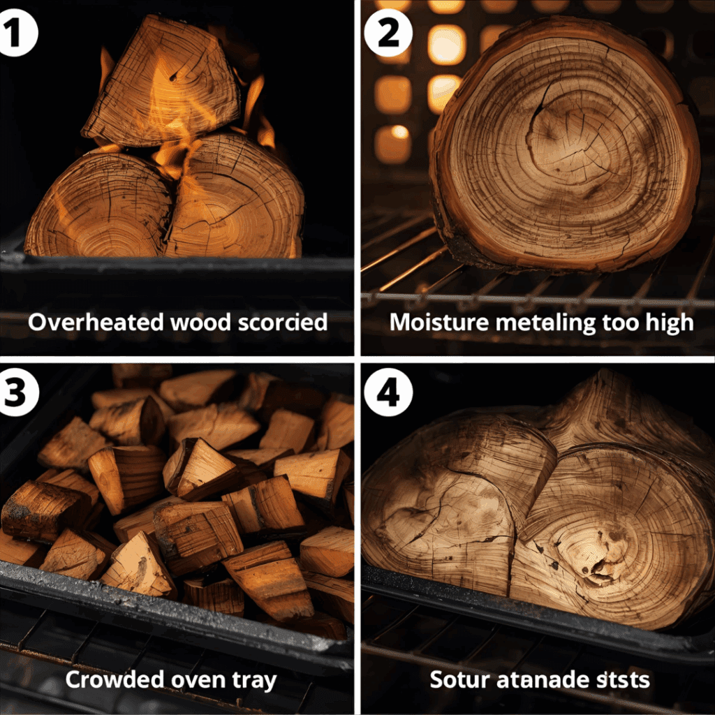 - Overheating â I once pushed a batch of cedar to 220°F to âspeed things up.â The surface browned slightly, and the boards smelled burned. Lesson learned. Now Iâd rather wait an extra hour than ruin the smell of my shop for a whole weekend.