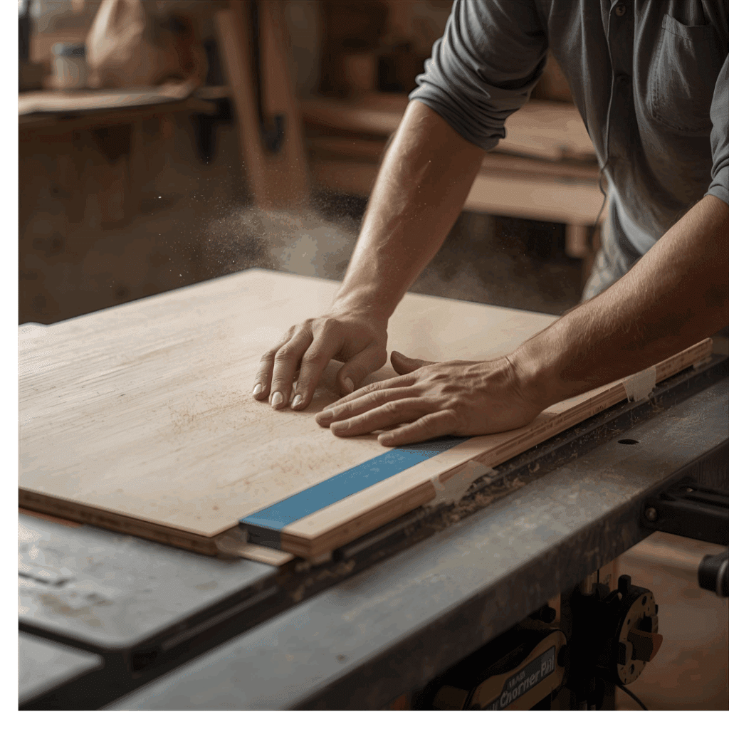 Cores matter more than many beginners realize. A veneer core keeps cabinets light but strong, while a combination core balances durability with a flat surface that takes edge banding cleanly. For shop jigs or pieces that won’t show, particleboard-core plywood can save money without hurting performance.