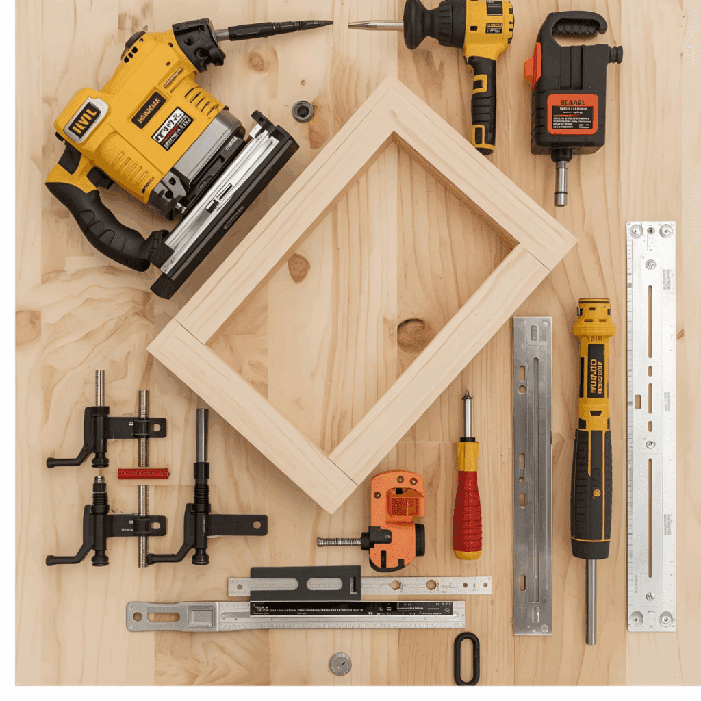 - Clamps, drill/driver, square, tape measure, and patience.