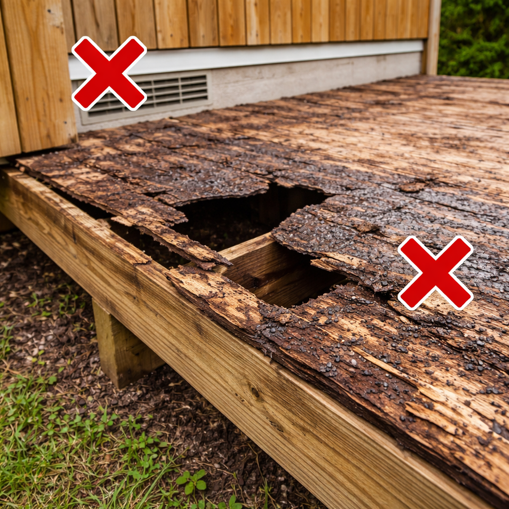 That failure forced me to rebuild the entire floor using pressure-treated plywood. Since then, no issues. That one project completely changed how I approach outdoor builds.