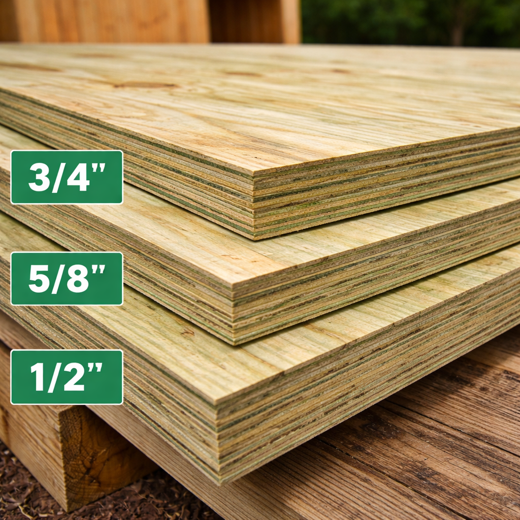 Choosing the right type of pressure-treated plywood is just as important as choosing to use it in the first place. One of the biggest mistakes people make is assuming all treated plywood performs the same way, but thickness and treatment rating can drastically affect how long your project lasts. For example, shed floors almost always benefit from 3/4-inch pressure-treated plywood with a UC4A rating, since it can handle both structural load and moisture exposure from below. Deck subflooring, on the other hand, can sometimes get away with 5/8-inch thickness depending on joist spacing, but going thicker adds long-term stability. If you’re unsure how thickness affects performance, it’s worth reviewing a plywood thickness guide before making a purchase, because undersizing material is one of the fastest ways to create sagging or failure over time.