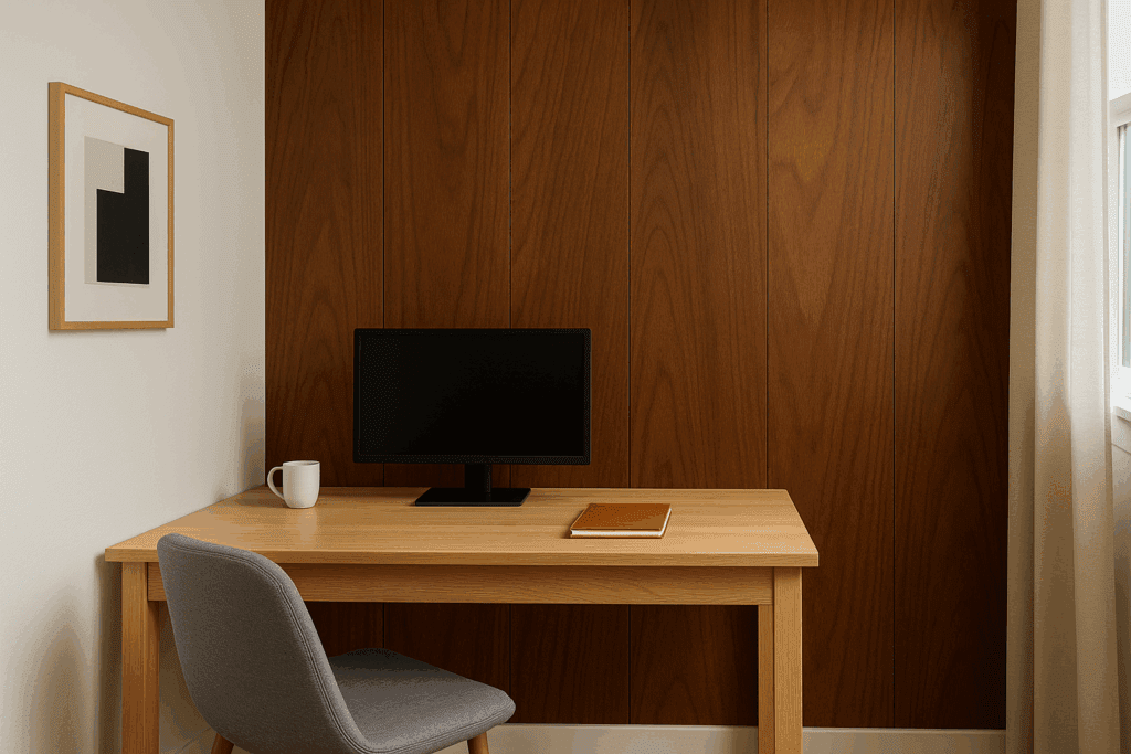 Sande plywood can be used for interior wall cladding where a high-end, warm look is desired. The fine-grain pattern takes stain evenly, making it perfect for feature walls that you want people to notice. I’ve installed it in a home office, giving the back wall a rich walnut tone that made the whole space feel more polished. It’s easy to cut for outlets and switches, and with a little planning, you can line up the grain so it flows from panel to panel. A clear satin finish works just as well if you prefer a lighter, more natural look.